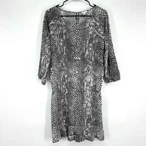 Soft Joie Arryn B Dress Womens Size Large Gray Snake Print 3/4 Sleeve Mini. Great pre-owned condition. Elastic waist. Back keyhole with button closure.