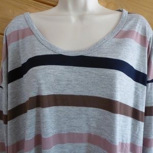 Soft Joie Gray Blue Brown Stripe 3/4 Sleeve Shirt Oversized Tee Top
