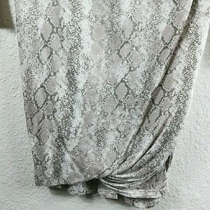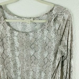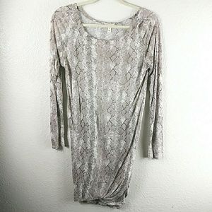 Soft Joie Gray Tahar Python Snake Print T-Shirt Dress. Long sleeves and ruched at the bottom with elastic.
