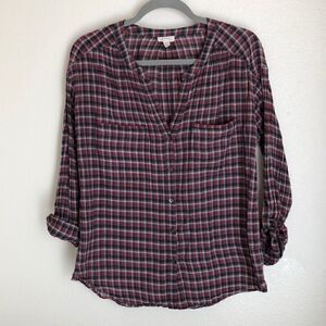Soft Joie Lightweight Button Down Red Plaid Top in size extra small. 2 front pockets. Sleeves can be worn cuffed up (as pictured) or down.