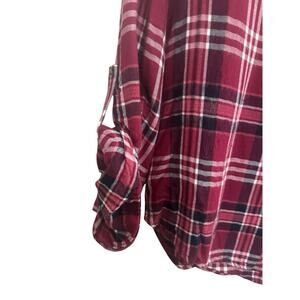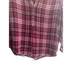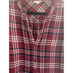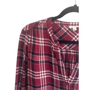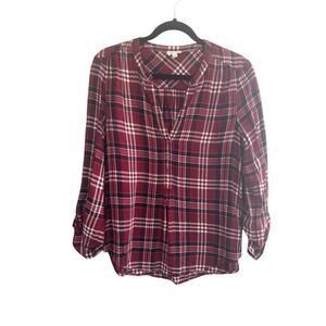 Soft Joie Plaid Long Tan Sleeve Button Popover Top Womens Medium Burgundy #5325