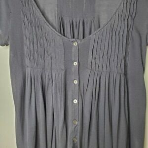 Features : scoop neck, button down, pleated, loose fit, short sleeve, light, flowy