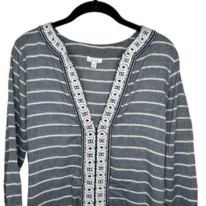 Soft Joie Tunic Top Dress Womens XS Blue White Embroidered V-Neck . Smoke free home. Ships fast!