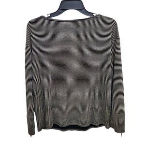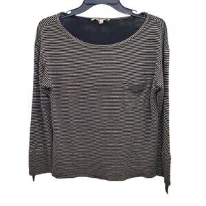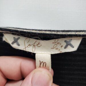 Soft Joie Women's Black Gold Metallic Thread Roll Tab Sleeve Pocket Knit Top M
