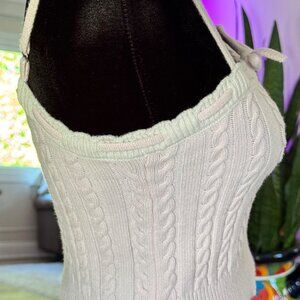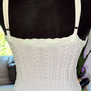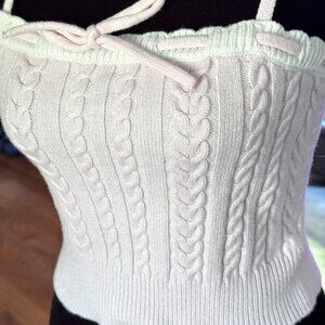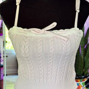 Soft Knit Cable Crop Top – Cream Ivory, Adjustable Straps, Bow Detail sz(L)