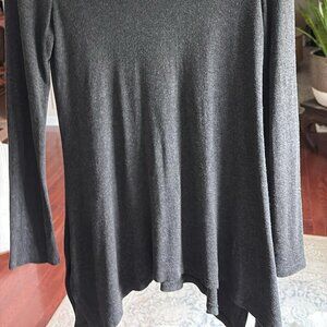 Soft Knit Cowl Neck Tunic Sweater Top Dark Gray Asymmetrical Hem