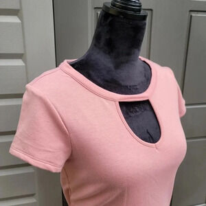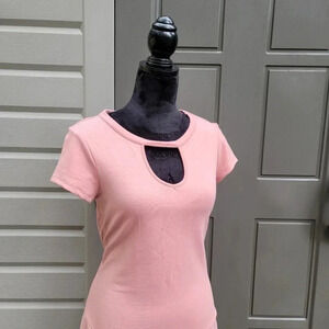 Soft Knit Short Sleeve Dress Keyhole Neckline Pink