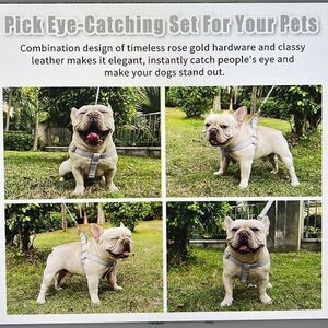 Soft Leather No Pull Dog Harness Gray/ Rose Gold Medium New!