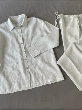 100% Soft Linen Set with Shell Buttons