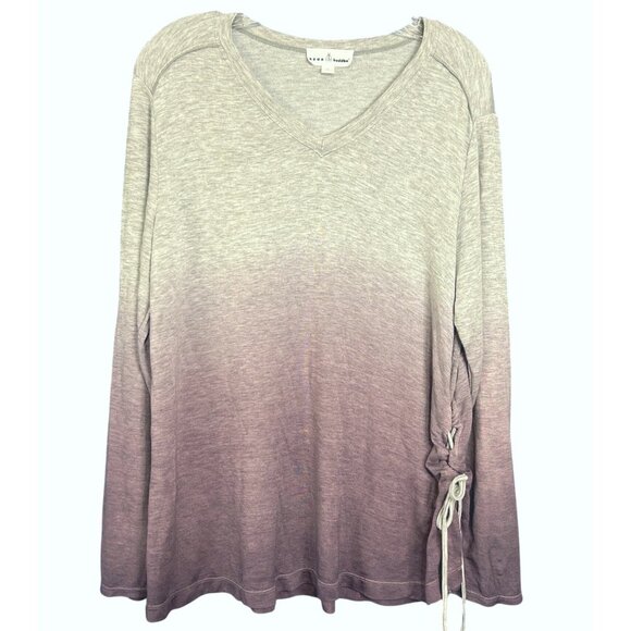 A versatile long sleeve ombre top featuring a soft fabric blend and a stylish adjustable side tie. Designed for comfort and a polished casual look.