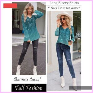 Soft Long Sleeve V-Neck Tunic Top Loose Fit Casual Winter Tee