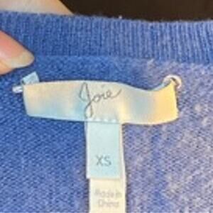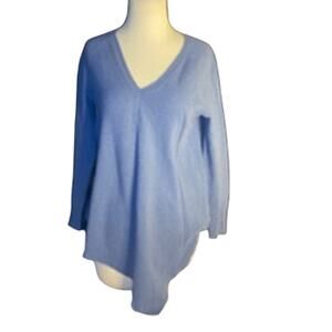 Soft Luxe Minimalist Cozy Cashmere Blue V-Neck Sweater Joie XS