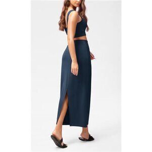 Soft Maxi Skirt, Casual Long Pencil Skirts Blue