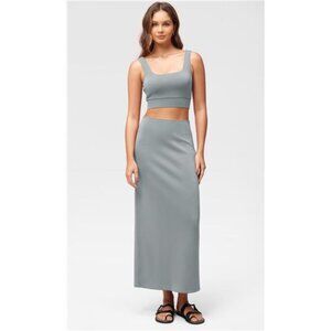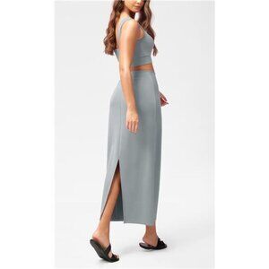Soft Maxi Skirt, Casual Long Pencil Skirts GreyBlue