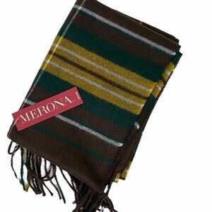 Unisex soft tartan plaid scarf by Merona. Brown, green, yellow and white with fringe. Due to light & screen variations, colors may vary slightly from the images