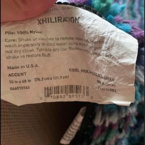 Really soft multicolored rug! We haven’t used it in a few years because it doesn’t go with our decor anymore. The rug is size 30in x 48 in.