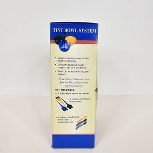 Tint bowl set includes: 3 lightweight plastic tint bowls, 3 tint brushes, 6 extra large sectioning clips and a uniquely designed holder