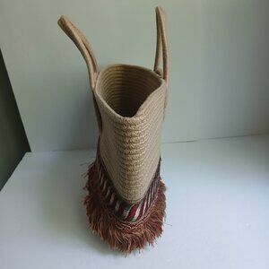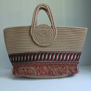 Soft Natural Rope Satchel Tote Bag Rich Circular Handle Embroidery & Fringe