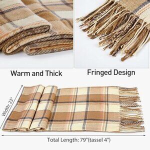 Size: Measuring 79" in length by 23" in width (plus 4" tassels), this oversized plaid scarf offers versatile style for women and girls alike. Perfect for wrapping around your outfit as a shawl or wearing as a cozy wrap, it ensures you stay warm and stylish all day long.