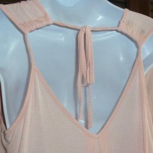 Soft Peach Night Gown Pjs, Adjustable, Ties in Back, Sleeveless, V-Neckline, M