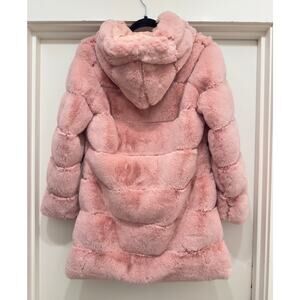 Soft Pink Faux Fur Hooded Jacket Coat Excellent Pockets Lined Lanshifei Small