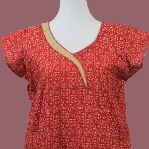 Discover effortless style with our Pink Printed Kurta. Featuring a flattering V-neck, this above knee-length kurta boasts short sleeves for comfort. Crafted from high-quality cotton, it pairs perfectly with jeans or pants for a chic look that's both casual and stylish.