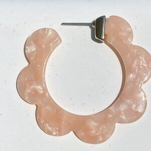 Soft Pink Resin Scalloped Hoop Earrings, Excellent Condition, No Backs/Stops
