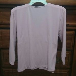 Light weight soft pink stretchy split v-neck top with 3/4 length sleeves. Gathered under bust line to flatter the bust line & more fitted thru waist for a more slender look. Ez wash & wear. Clean, no rips, tears or stains. Tags removed for comfort but is a size XL $8. Taking offers.