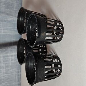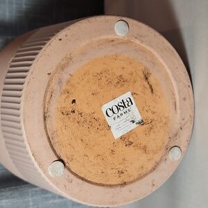 EUC mauve flat paint ceramic pot. Includes one large drainage insert and three little inserts. Three soft "feet" protectors on the bottom. Made of unknown materials - believed to be ceramic. Closet kept in a pet and smoke free home. (Matching black version in closet)