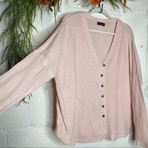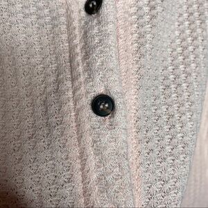 Soft Pink Waffle Weave Button Front V Neck Long Sleeve Top Size Large