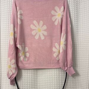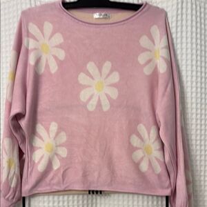 Soft Pink and White Floral Crew Neck Sweater Size M