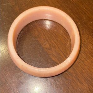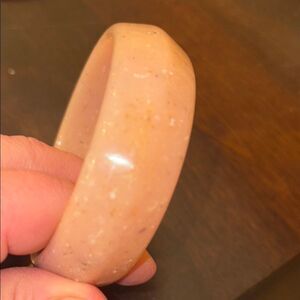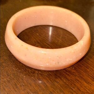 This chunky bangle bracelet features a smooth rounded band in a soft speckled peachy pink hue, offering a minimalist and modern aesthetic. Crafted from solid material, this piece showcases the beauty of simplicity without any embellishments.