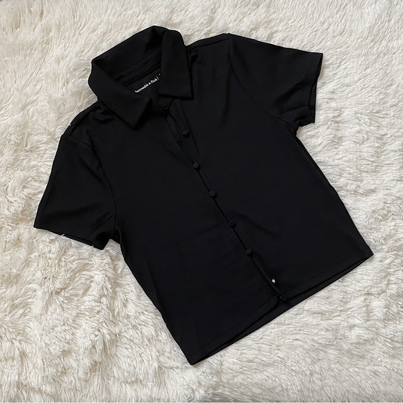 Abercrombie Black Soft Ribbed Button Up Top