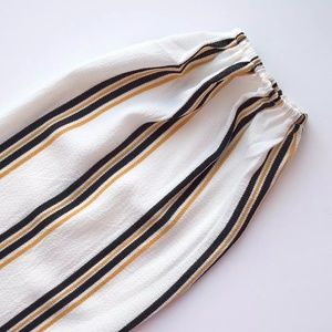 Black and peach stripes on white