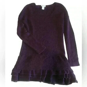 The Soft Surroundings Knit Ruffle Layered Plum Pullover Sweater in size XS is a stylish and cozy piece of clothing. This sweater features a unique design with ruffle-layered detailing, adding a touch of femininity and charm to your outfit.