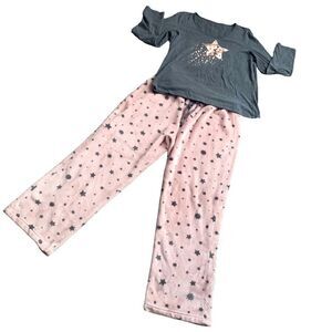 Soft Sensations Gray & Pink Star Print Fuzzy Pajama Set Size Large