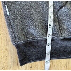True color shows on measurements. Lighter gray on body, darker gray on ribbed Sleeve and waist hem.
