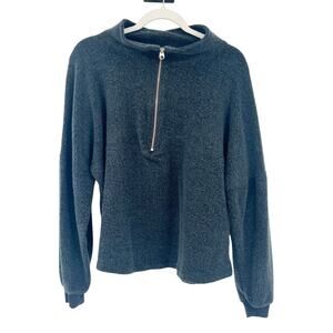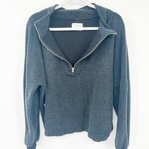 Soft Serve Womens Organic Cloud Cotton Cozy 1/4 Zip Hoodless Hoodie in Charcoal Gray. Size large.