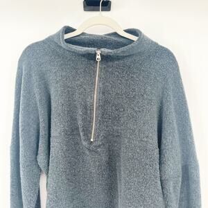 Soft Serve Womens Organic Cloud Cotton Cozy 1/4 Zip Hoodless Hoodie Size L Gray