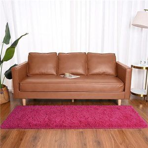 Soft Shag Runner Rug for Bedroom, 2x6 Feet Fluffy Rugs with Non-Slip, Rose Red