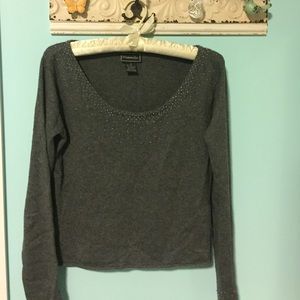 This sweater is so soft, that it feels amazing next to your skin. Have outgrown it, otherwise I'd keep it!😟 Measures 19.5 from back of neck to bottom. Beaded all around neck. Worn maybe twice ~ mint! 85% Silk, 15% Cashmere
