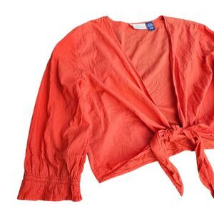 Soft Sorroundings 3/4 Sleeve Front Tie Crop Top Red Large