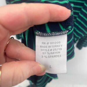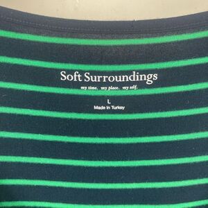 Soft Sorroundings Women's Striped tunic 3/4 Sleeve 2 Pockets Green navy blue Lar