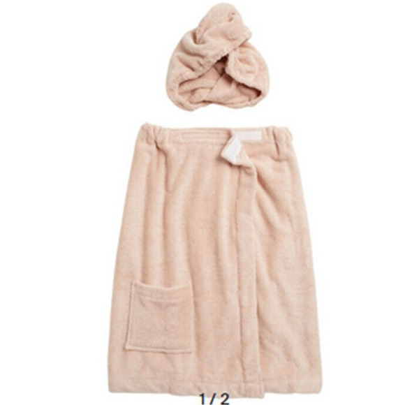 Nordstrom Rack Essential Women Soft Spa Bath Body Wrap Set Towel Bathrobe With Fast Dry Hair Drying Cap Sz M / L Cotton