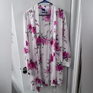Soft, floral robe with lace details on the sleeve, ties inside as well as around waist, light weight, worn once, Apt 9 size L