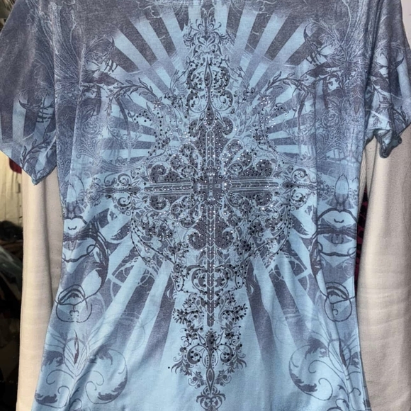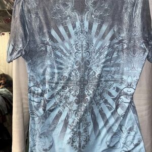 Chic blue tee with elegant patterns. Ideal for everyday style.
