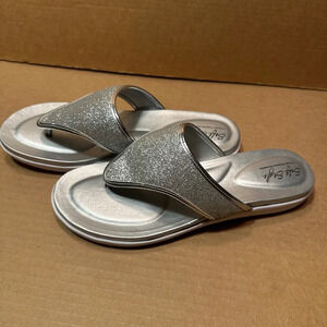 Soft Style by Hush Puppies silver glitter flat sandals, sparkly, 9.5, flip flop