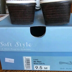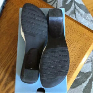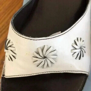 White leather sandal with laser cut detail on top, 2 “ heel. Gently worn.