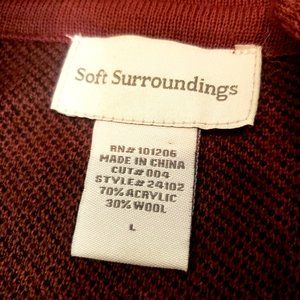 Soft Suroundings coat knit Large button snap bell sleeve maroon black roses