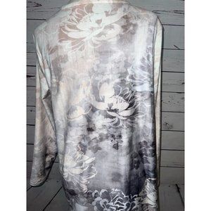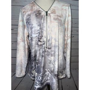 Soft Surrondings Corrina Large Shirt Floral Half Zip Tunic Top 2BR47 Soft Velour with floral pattern in crème, black and pink. 95% Polyester 5% Spandex. Hand wash. shoulder to end of sleeve 23.5", Pit to pit 23", back bottom of collar to bottom of blouse 28". Made in china. Hand wash. Great preowned condition with no rips or stains. perfect for the business casual or career working woman.